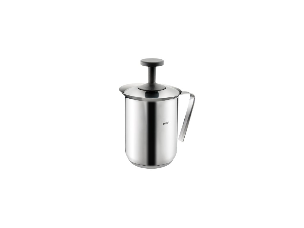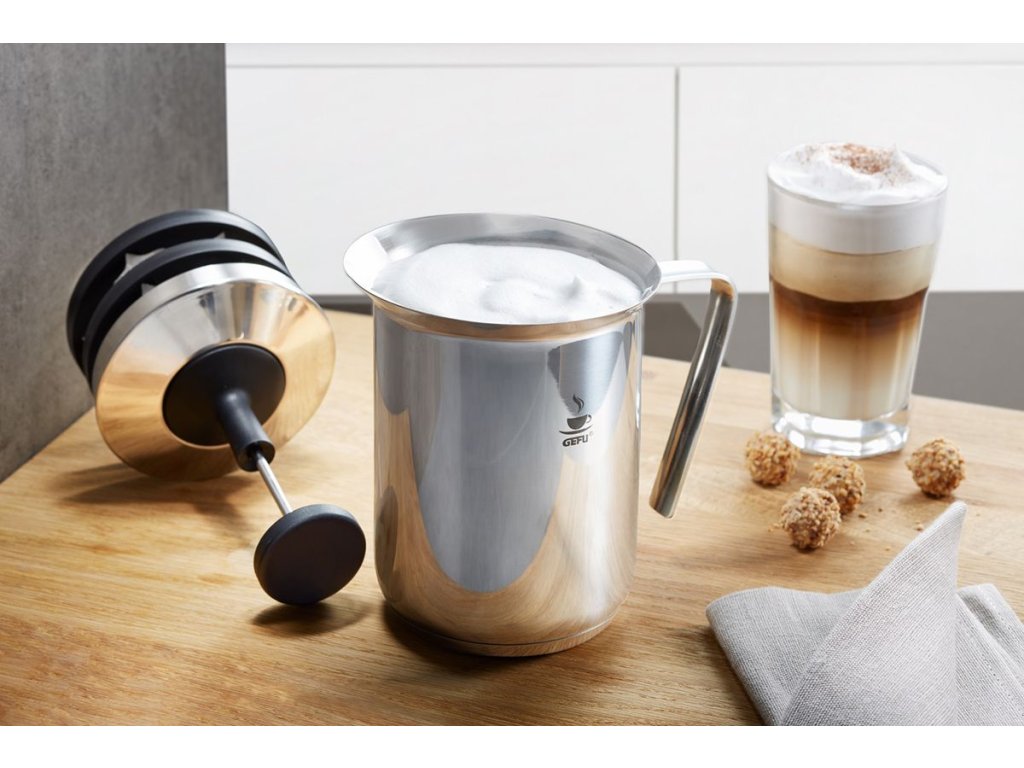 Dvojité síto napěňovače mléka rychle připraví mléčnou pěnu na kávové speciality. Horkou čokoládu nebo chai latte lze také namíchat bleskově. Sendvičové dno je vhodné pro všechny typy sporáků – a bez námahy lze použít i studené mléko. Jednoduše nalijte mléko, nasaďte víko a pohybem praktické rukojeti nahoru a dolů proměníte mléko v krémovou, jemnou pěnu pro latte macchiato a podobně!