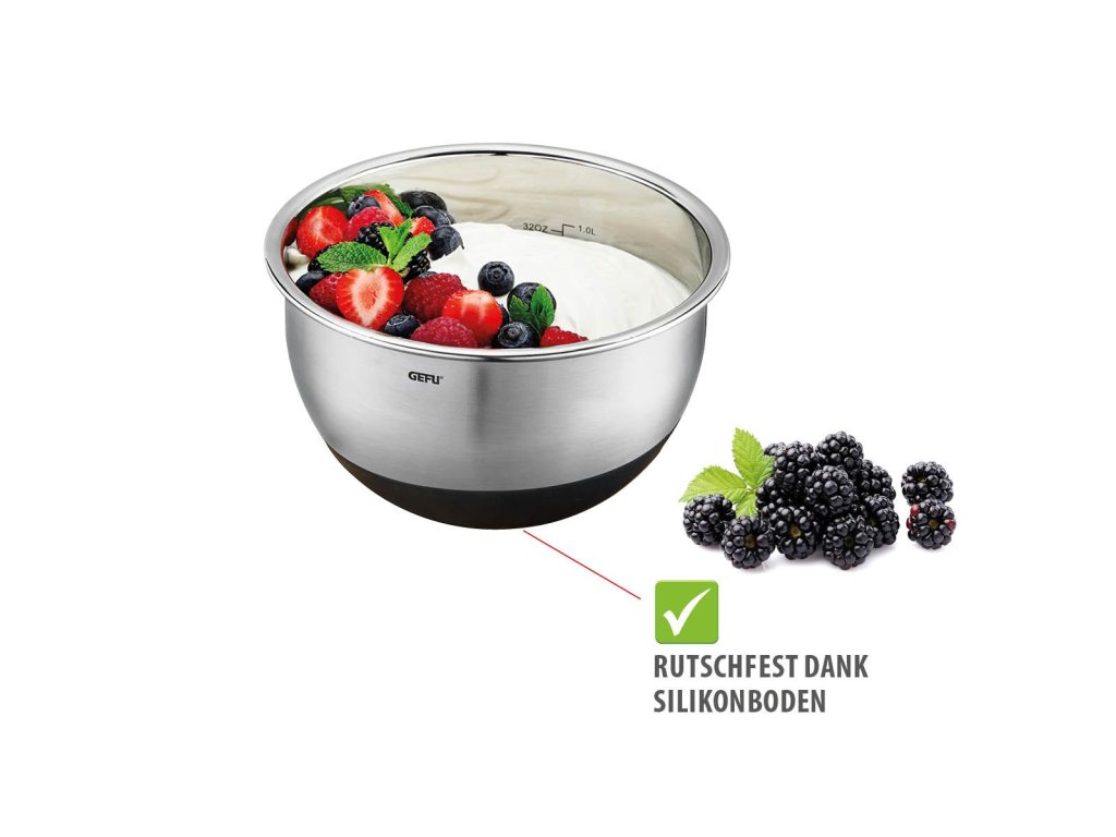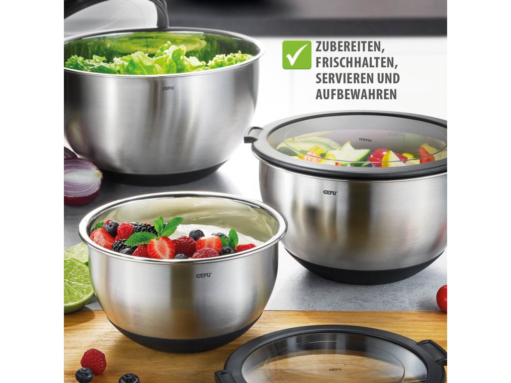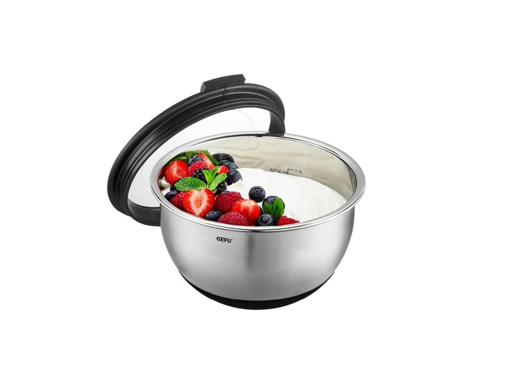 Tato miska je působivá svým všestranným použitím a bezpečným stojanem a součástí je i víko, které vám umožní mít neustále přehled o vašich lahůdkách.