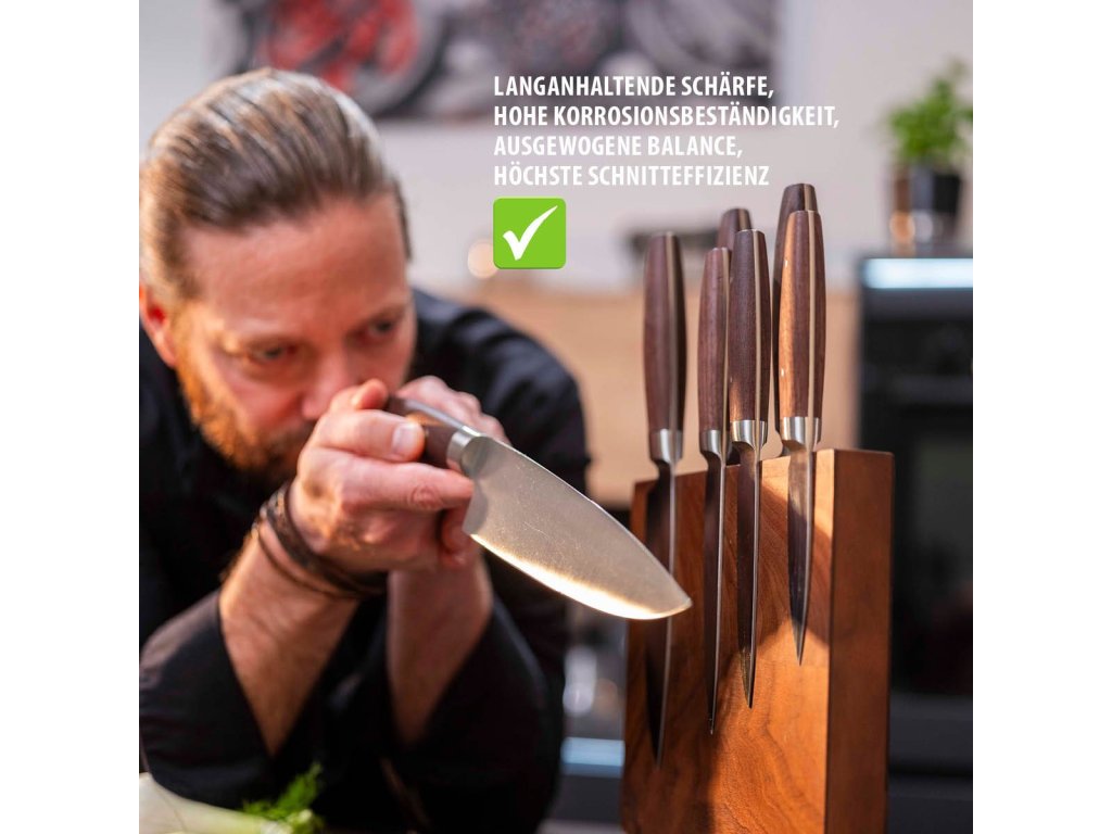 - Nejlepší kvalita čepele Solingen: vysoce kvalitní německá speciální ocel pro čepele 1.4116, kalená v ledu, ručně broušená z obou stran, HRC 57