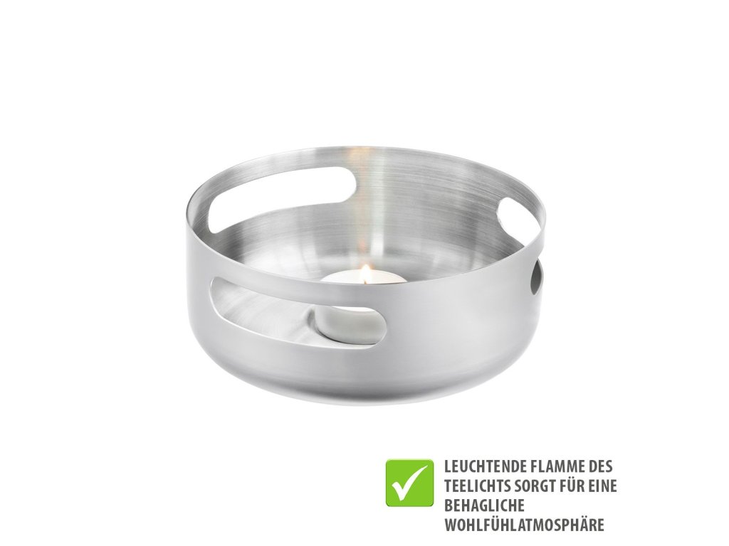 Ohřívač čaje T-PREP je perfektním doplňkem pro delší požitek z čaje. Udržuje čaj na ideální teplotě po požadovanou dobu, takže si můžete vychutnat každý doušek vašeho oblíbeného čaje. Zároveň teplý plamen jeho čajové svíčky vytváří útulnou a příjemnou atmosféru.