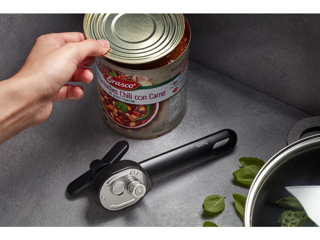 Otvírák na konzervy ONTOP přináší moderní a maximálně bezpečný způsob otevírání plechovek. Unikátní řezací mechanismus zajišťuje hladké a čisté oddělení víčka, aniž by na konzervě nebo víčku vznikly ostré hrany. To znamená nejen bezpečnější manipulaci, ale i možnost víčko po otevření znovu nasadit – praktické a chytré řešení pro uchování zbytků.