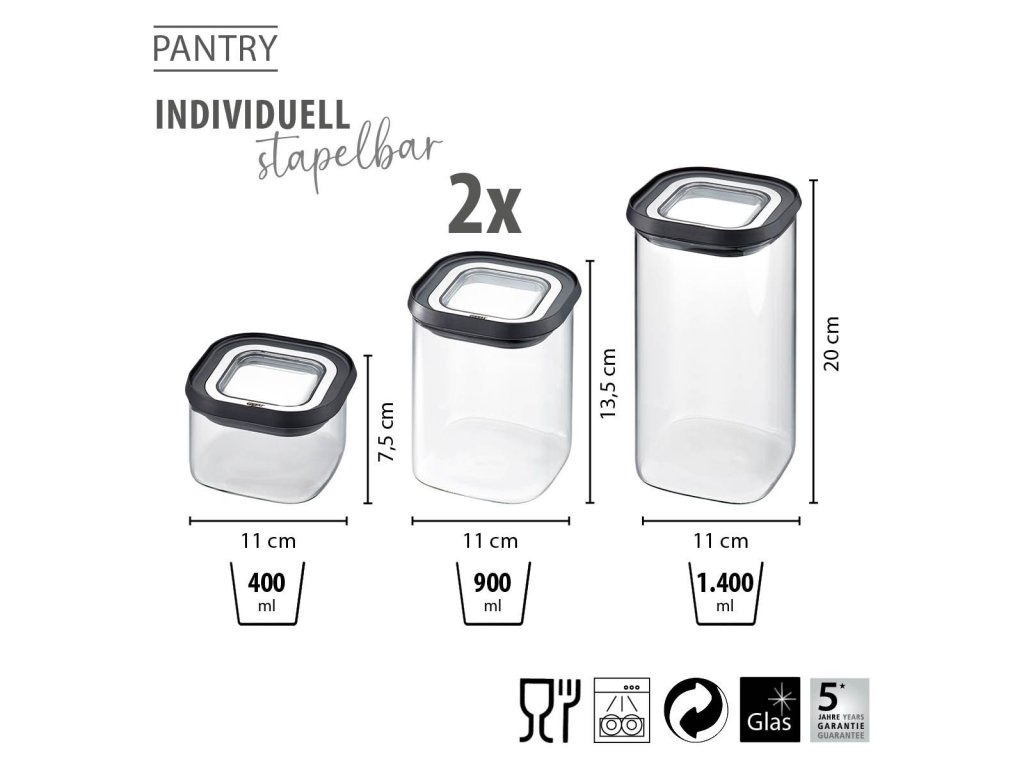 GEFU Potravinové nádoby PANTRY, 4-dílný set, 400 ml + 2 x 900ml + 1400ml