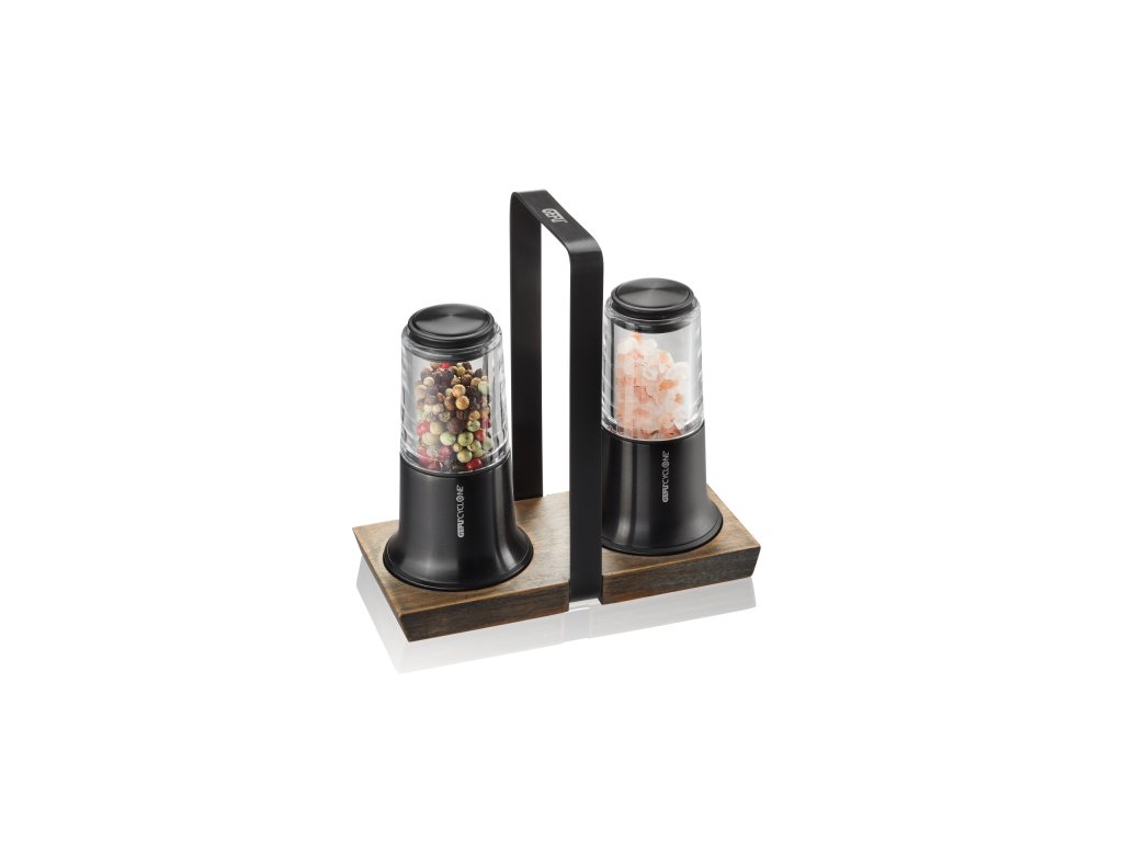 Mlýnky jsou vyrobeny z vysoce kvalitního akáciového dřeva v elegantním černém provedení a doplněny praktickou rukojetí, díky které se pohodlně drží a snadno používají. Vzduchotěsné víko chrání koření před vlhkostí a ztrátou aroma, zatímco snadno plnitelná nádoba umožňuje rychlé doplnění soli nebo pepře.