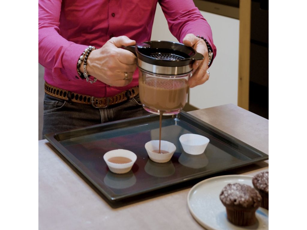 Se separátorem tuku FLUIDO se příprava lehčích a zdravějších pokrmů stává jednoduchou záležitostí. Stačí nalít horkou polévku, omáčku nebo vývar do nádoby – tuk se přirozeně oddělí a vystoupá na hladinu, zatímco odtučněná tekutina zůstane dole. Pomocí uvolňovací páčky v rukojeti lze poté čistou tekutinu pohodlně odebrat otvorem ve dně nádoby.
