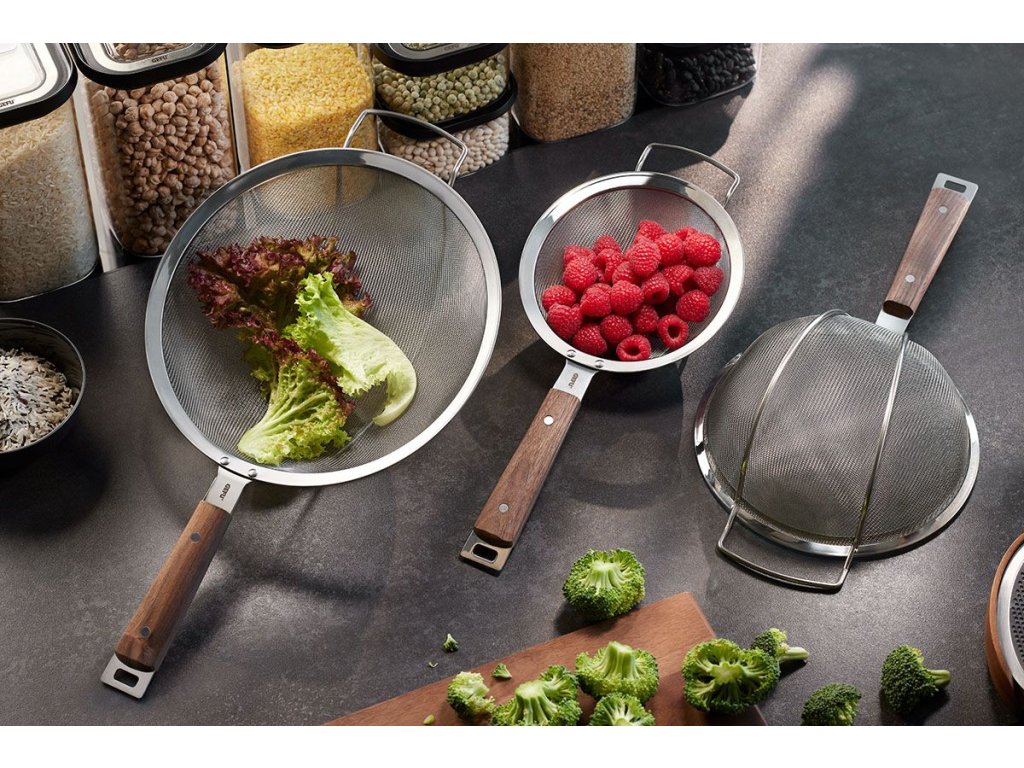 Síto PASSO je určeno pro náročné používání v domácí i profesionální kuchyni. Rukojeť z jemného ořechového dřeva je ergonomicky tvarovaná, příjemná do ruky a poskytuje stabilní úchop. Konstrukce z vysoce kvalitní nerezové oceli zaručuje dlouhou životnost a zachování tvaru i při častém používání.