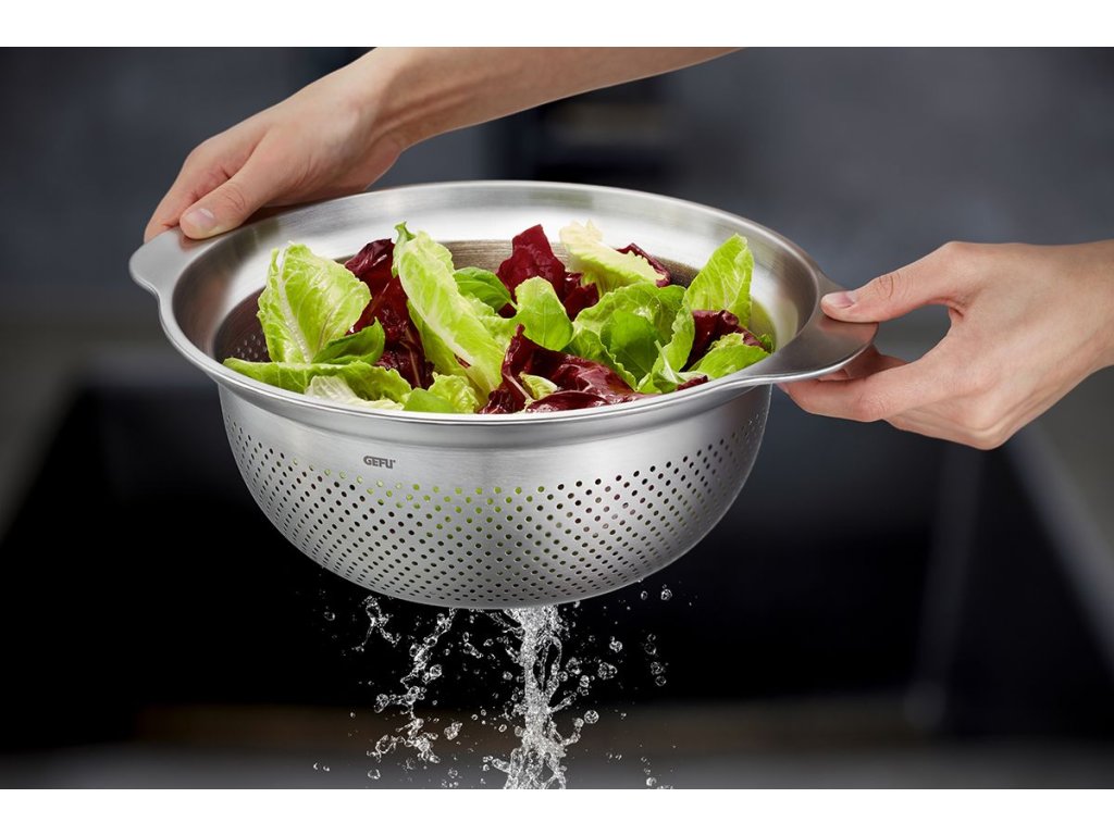 Funkce 3 v 1 umožňuje sítko využít nejen ke scezení uvařených těstovin a zeleniny, ale také k pohodlnému mytí ovoce, luštěnin a salátů. Zároveň slouží jako praktická napařovací vložka pro přímé použití v hrnci. Ergonomické rukojeti zajišťují bezpečnou manipulaci i při práci s horkými surovinami.