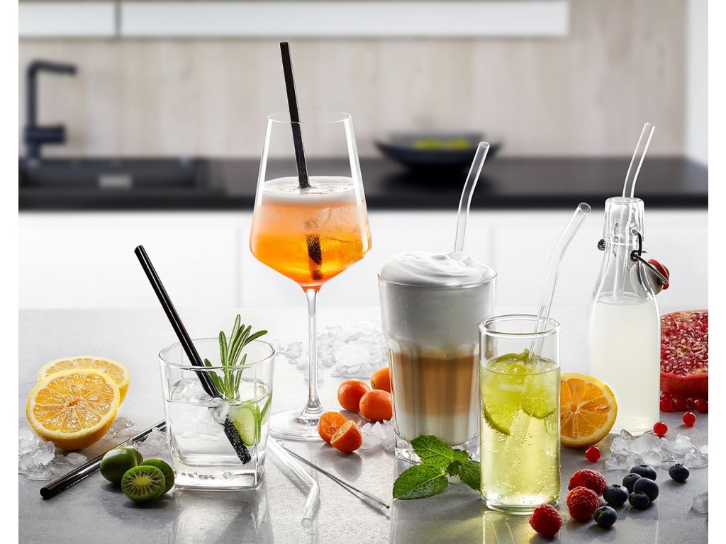 Ekologické povědomí se zde propojuje s moderním designem. Sada skleněných brček FUTURE je vyrobena z recyklovatelného borosilikátového skla, které je tepelně odolné a nijak neovlivňuje chuť nápojů. Brčka jsou vhodná pro vodu, džusy, smoothies, kávové speciality i koktejly.