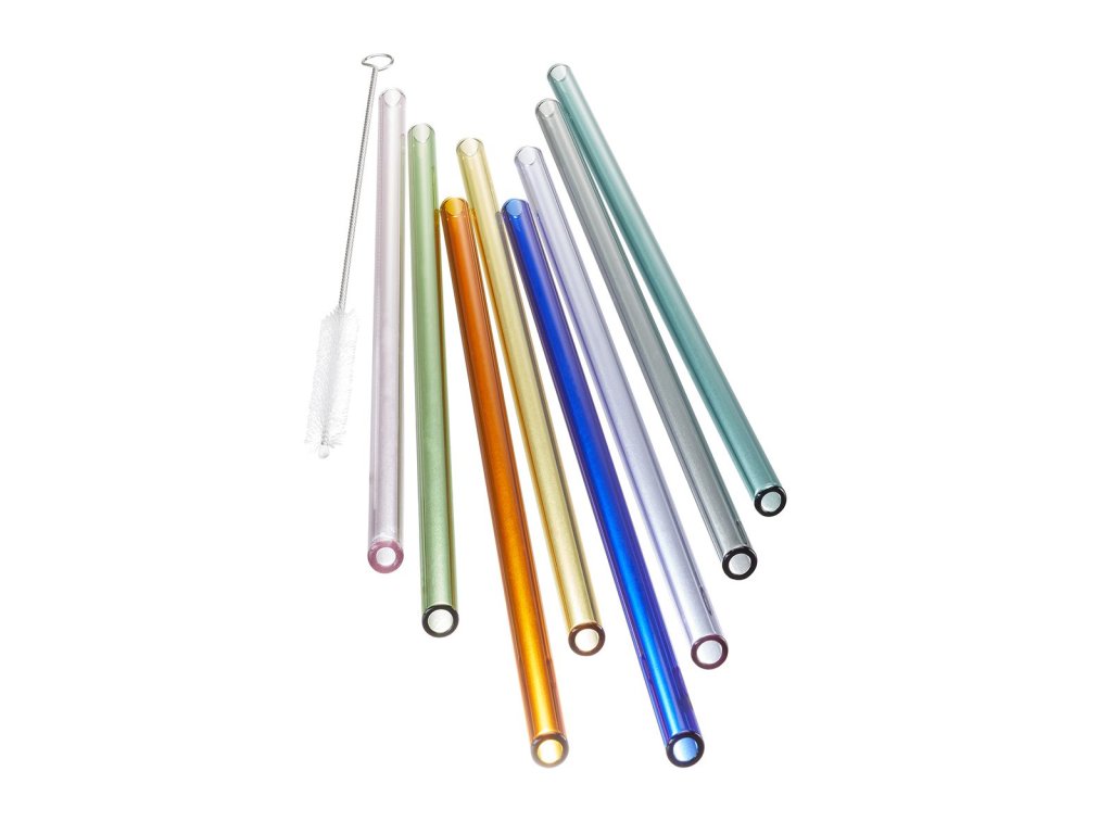 Skleněné brčko na pití FUTURE, 23 cm, různé barvy, 8 kusů s kartáčkem