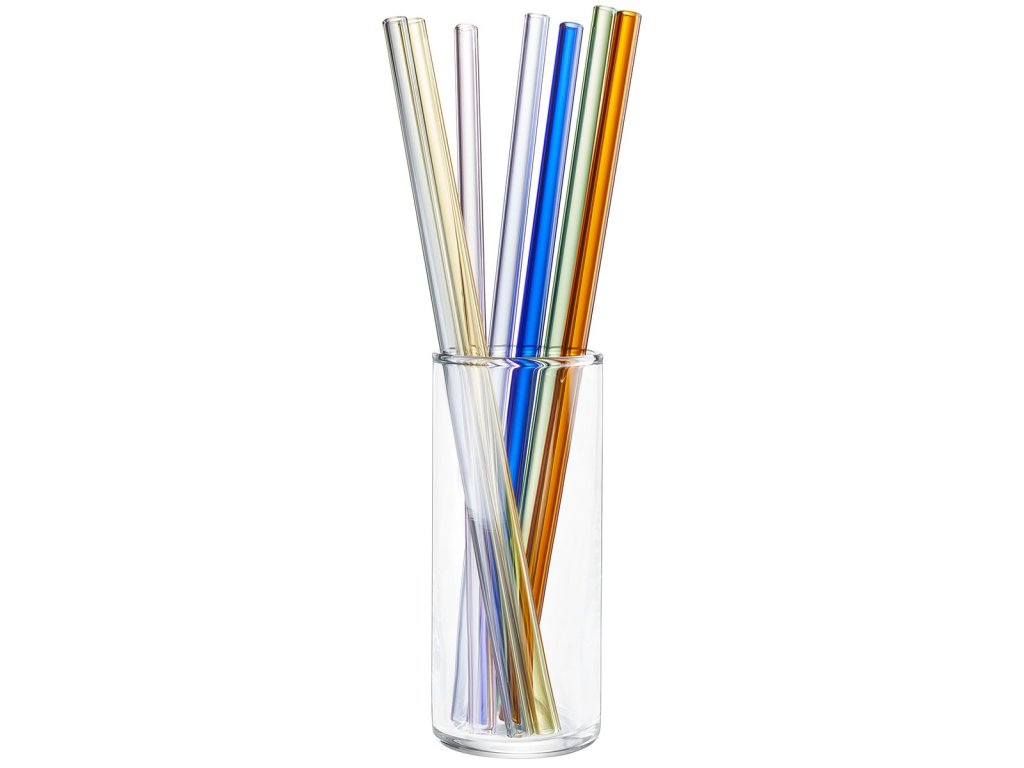 GEFU Skleněná brčka FUTURE, 23 cm, barevná sada 8 ks, vč.kartáčku