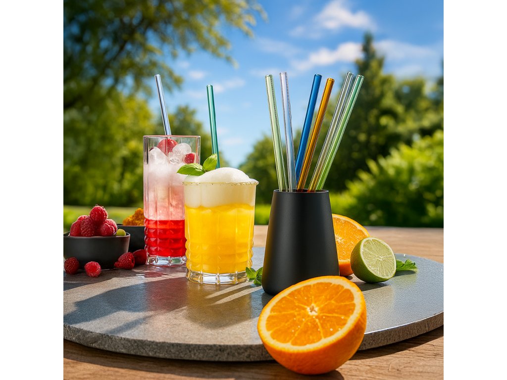 Ekologické povědomí se zde snoubí s hravým designem. Skleněná brčka FUTURE jsou vyrobena z kvalitního borosilikátového skla, které je tepelně odolné a nijak neovlivňuje chuť nápojů. Díky délce 23 cm jsou ideální pro vodu, džusy, smoothies, kávové speciality i koktejly.