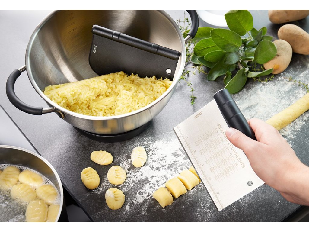 Stěrka na těsto DUTTO je ideální pro maximální potěšení při vaření a pečení. S robustním, hranatým nožem na těsto můžete rychle a přesně porciovat každý typ těsta. Praktický zaoblený plastový škrabák usnadňuje míchání a přelévání těsta a také důkladné vyčištění mísy na těsto až do posledního zbytku.