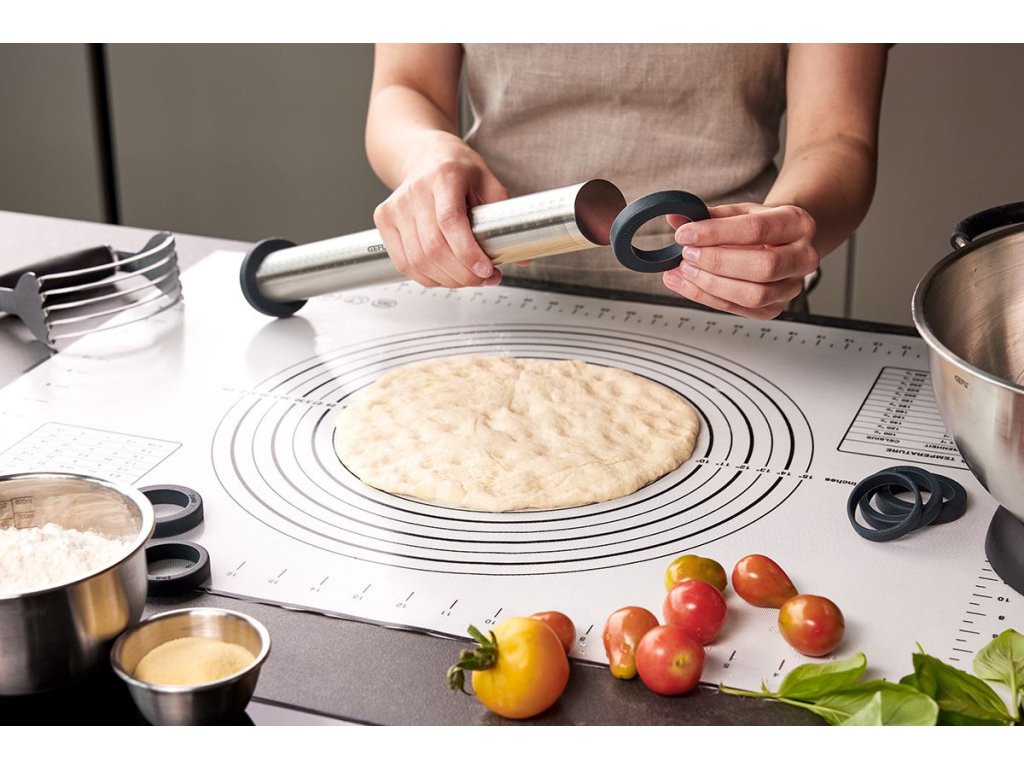 Váleček REGO je ideální volbou pro všechny, kdo chtějí mít plnou kontrolu nad tloušťkou těsta. Stačí nasadit vhodný pár silikonových kroužků a během chvilky vyválíte těsto přesně podle potřeby – na dorty, sušenky, pizzu, těstoviny i další sladké či slané pečení. Konzistentní tloušťka zaručuje rovnoměrné pečení a profesionální výsledek.