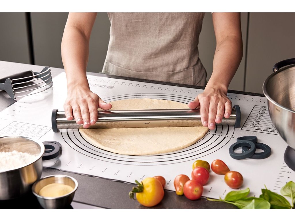 Robustní tyč z nerezové oceli je hygienická, bez chuti a zápachu a díky integrované váze umožňuje práci s těstem až do šířky 38 cm. Kombinace kvalitní nerezové oceli a silikonu zajišťuje dlouhou životnost, snadnou údržbu a pohodlné používání. Váleček je vhodný do myčky nádobí.