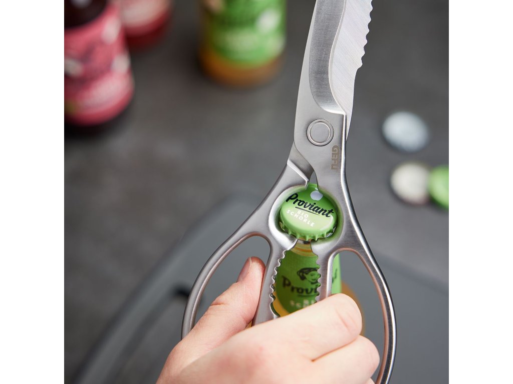 • Funkce: stříhání, otvírák na lahve, otvírák na otočné uzávěry do Ø 30 mm, louskáček na ořechy, loupání ryb, krájení kostí