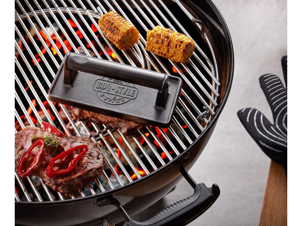 Hmotnost masa BBQ je ideálním pomocníkem pro grilování i smažení na pánvi. Pomáhá zabránit nežádoucímu stáčení masa, díky čemuž se steaky a burgery propečou rovnoměrně po celé ploše – bez syrového středu a přepáleného povrchu. Litinové tělo efektivně vede teplo a urychluje celý proces přípravy.