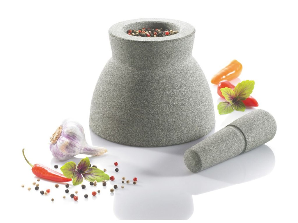 Granitový hmoždíř CRUNCHY přináší do vaší kuchyně dvojí užitek, protože je oboustranně použitelný – ideální pro malé množství koření nebo větší porce pesta a bylinkových past.