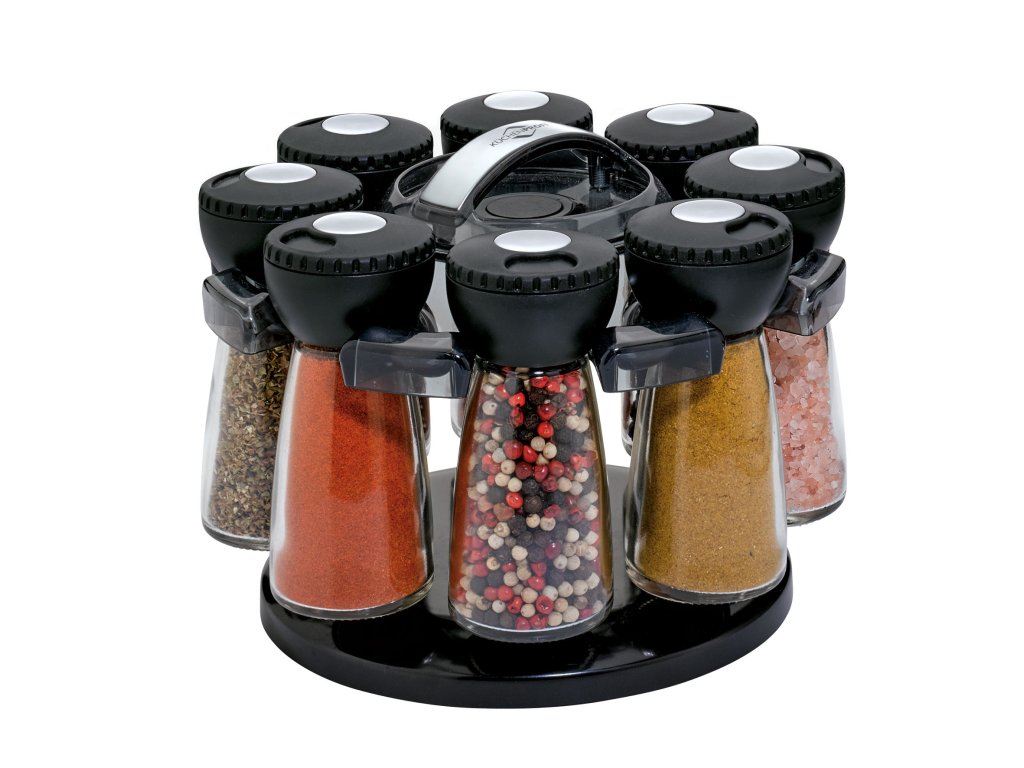 Stojan na koření 8 nádob, černý, kulatý, Küchenprofi