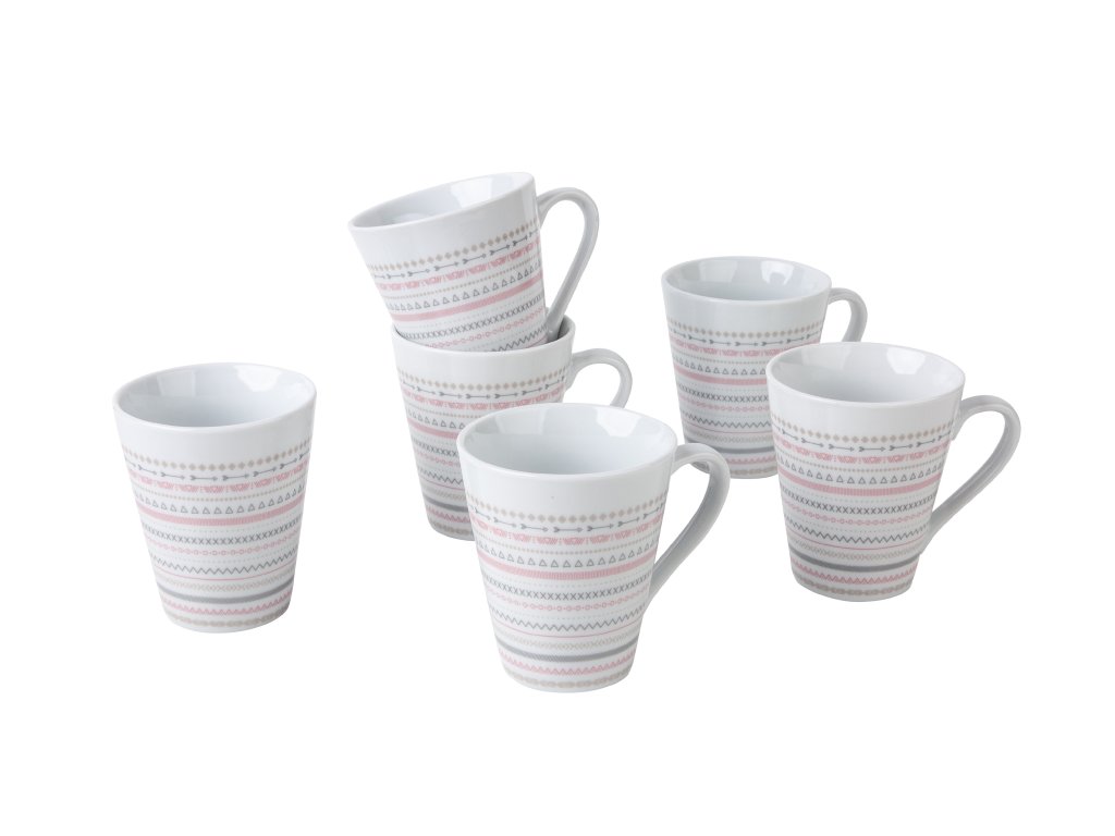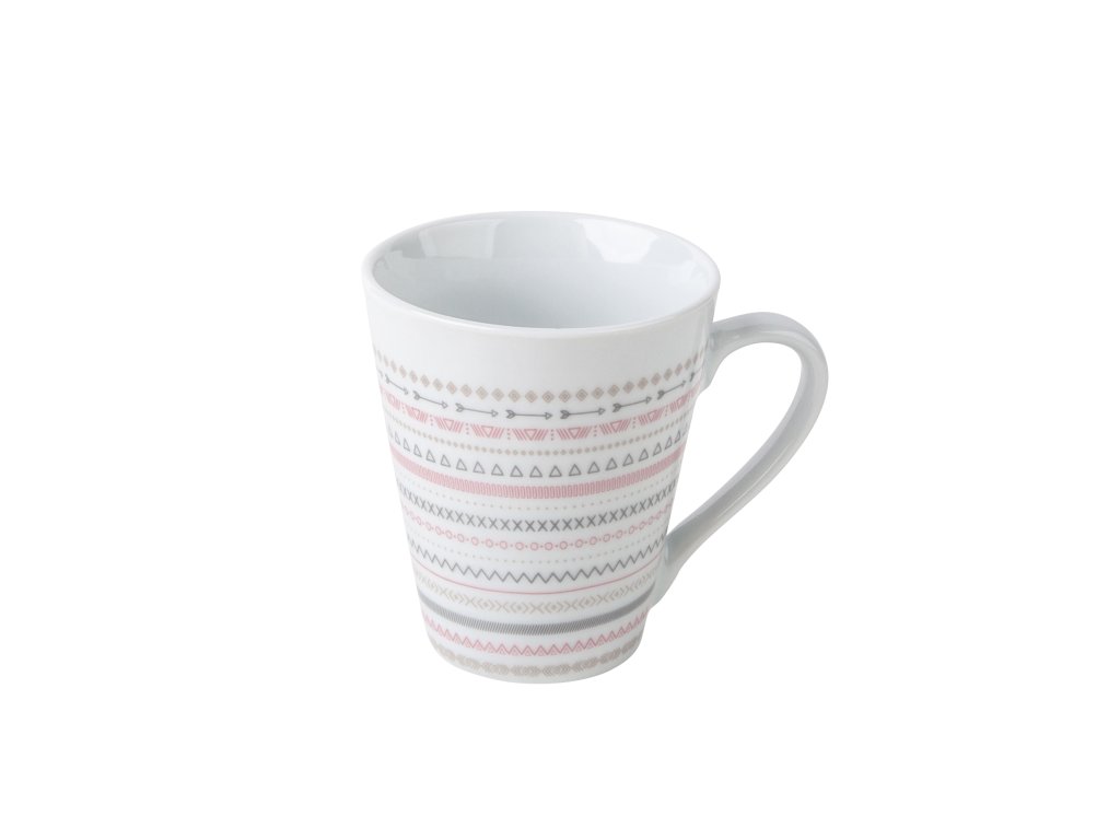 Hravá kolekce v indiánském stylu. Klasická kulatá jídelní souprava s širším okrajem, zdobená indiánskými motivy v zemitých barvách - béžová, šedá, růžová.
