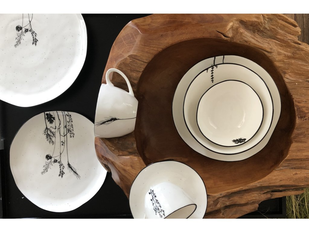 Kvalitní kostní porcelán, nepravidelný tvar, kropenatý povrch, okrajová černá linka a v tomto případě jednoduchý černý motiv klasů a polní trávy povyšuje kolekci Field od české značky by inspire…porcelán s českou duší na velmi elegantní a nadčasovou. Žně a sklizně vždy představovaly hojnost. Hojnost chceme mít i na svých stolech a vychutnat si dobré jídlo. Tato jídelní porcelánová sada je přímo stvořená pro servírování dnes tolik populárního domácího zdravého jídla.