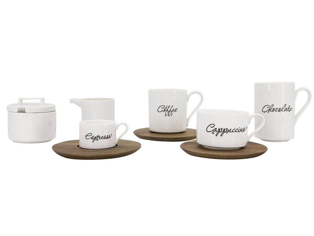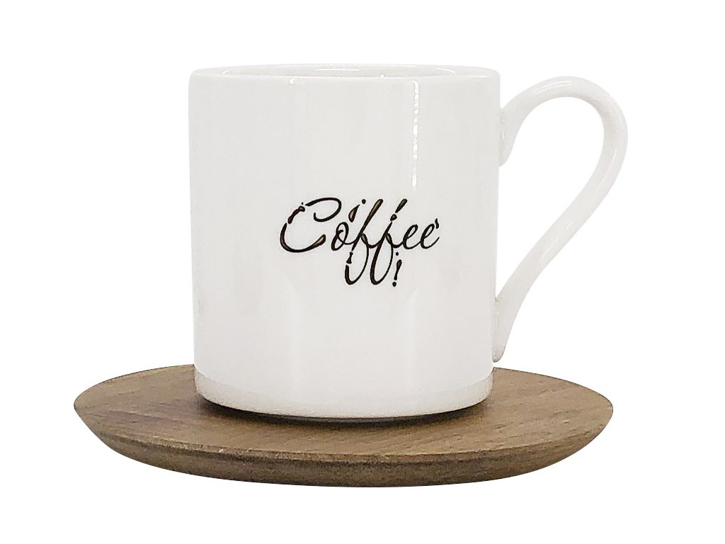 Kvalitní porcelán s nádechem smetanové barvy s nápisem Coffee. Tvar válce hrnku zaručuje dobrou stabilitu a je příjemný do ruky.