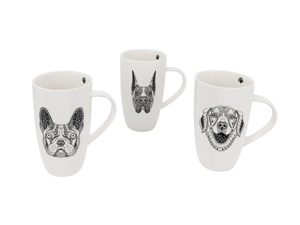 Kvalitní porcelán se smetanovým nádechem. Zde čeští návrháři vytvořili dekor oblíbených plemen psů v patchworkové podobě.Pro milovníky velkých hrnků.