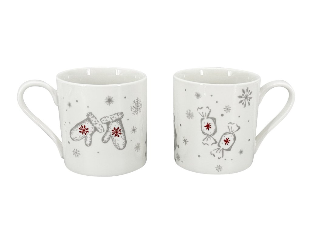 Hrnek na čaj Koleda, sada 2 ks, bílý hrnek s vánočním dekorem.