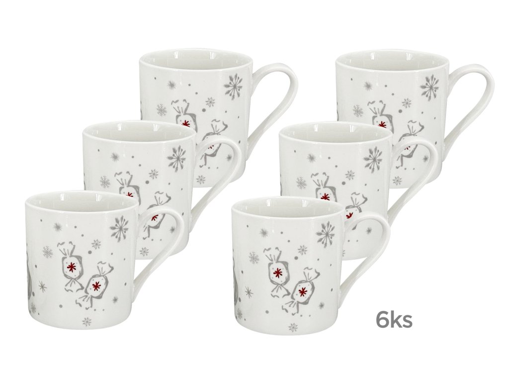 Hrnek na čaj Koleda, sada 6 ks, bílý hrnek s vánočním dekorem.