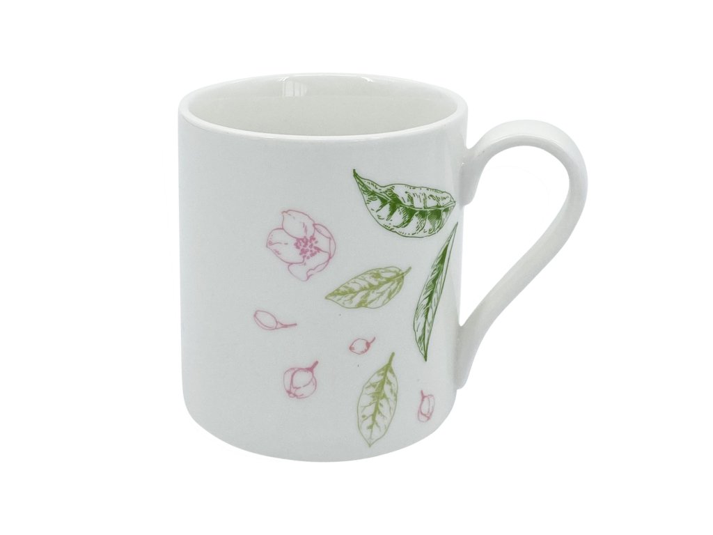Kvalitní porcelán s nádechem smetanové barvy s dekorem čajových lístků a květů. Tvar válce hrnku zaručuje dobrou stabilitu a je příjemný do ruky.