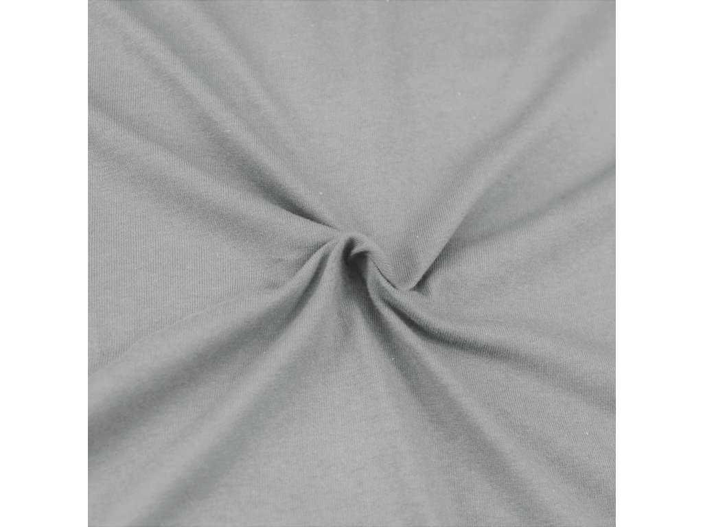Šedé napínací prostěradlo jersey je vyrobeno z velmi jemné napínací pleteniny ze 100% bavlny. Plošná hmotnost pleteniny jersey je 145g/m2. Pletenina je hladká, na omak velmi příjemná a jemná.