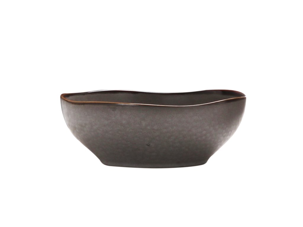 Hluboká miska v elegantním šedohnědém odstínu se pyšní výraznou plastickou strukturou a kontrastní hnědou okrajovou linkou. Nepravidelný, plastický povrch misky není jen vizuálně poutavý, ale dodává nádobí autentický, ručně vyrobený vzhled. S rozměry 16,5 × 6 cm je ideální pro servírování vydatných polévek, dušených pokrmů nebo velkých porcí cereálií.
