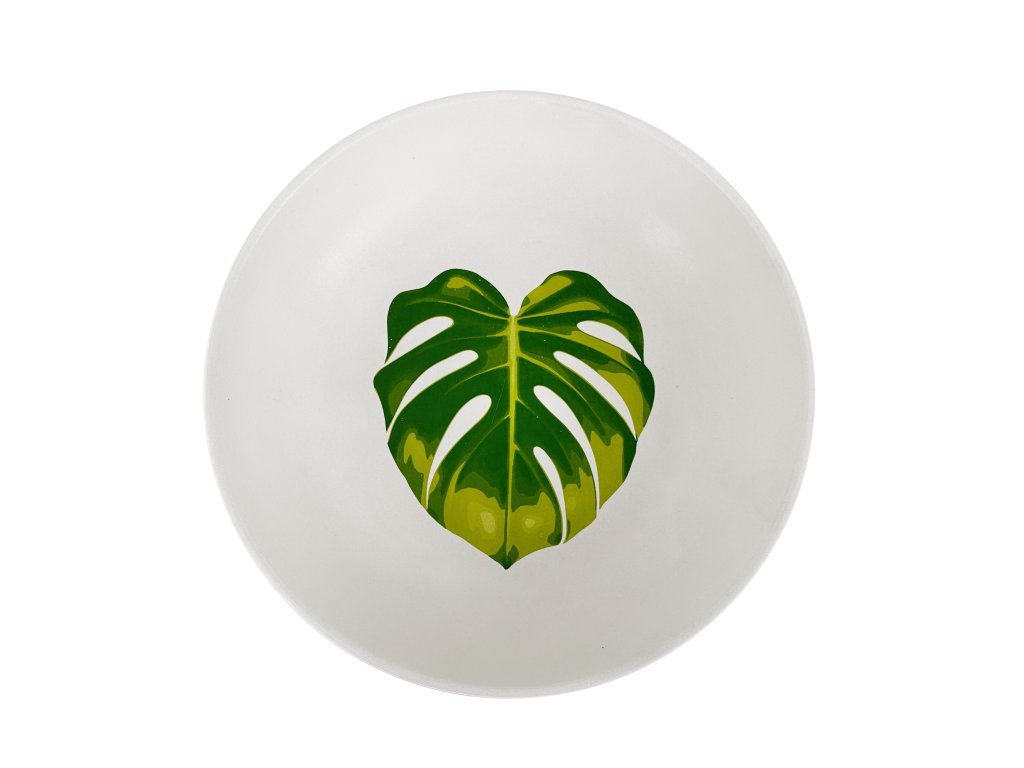 Talíř se vyznačuje hřejivou smetanovou barvou a matným keramickým povrchem, který je příjemný na dotek a vizuálně zútulňuje prostor. Ústředním prvkem je velký list monstery ve svěží zelené a limetkové barvě, který dominuje dnu talíře. Tento výrazný botanický motiv dodává talíři moderní a neotřelý vzhled, který skvěle kontrastuje s neutrálním podkladem. Matná keramika z naší české značky Clay zaručuje kvalitu a dlouhou životnost při každodenním používání.