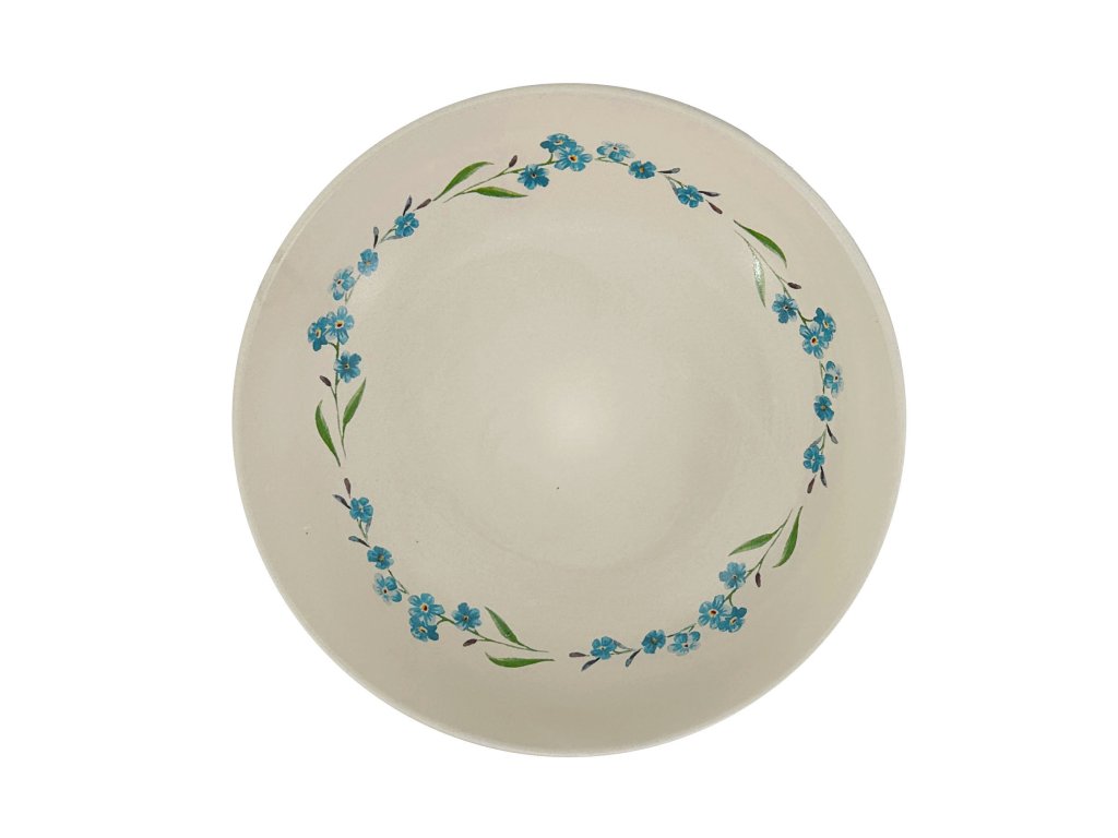 Polévkový talíř Cream Pomněnka přináší spojení rustikálního stylu a jemné elegance. Jeho smetanový povrch zdobí romantický modrý květinový dekor, který vnáší do stolování nádech nostalgie a venkovské harmonie.