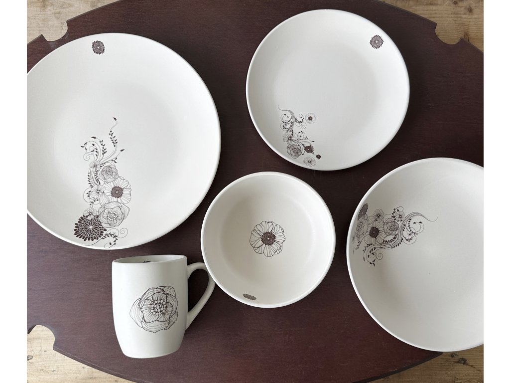 Hluboký talíř se pyšní smetanovou barvou a příjemným matným povrchem, který dodává keramice autentický a teplý pocit. Hnědý dekor bohatých, kreslených květin a lístků je umístěn asymetricky, podobně jako u mělkého talíře, a vytváří tak harmonický celek. Tento romantický motiv skvěle vynikne při servírování krémových polévek, italských těstovin nebo třeba rizota. Kolekce Clay se zaměřuje na jednoduché a zemité barvy s výraznými, ale elegantními akcenty.