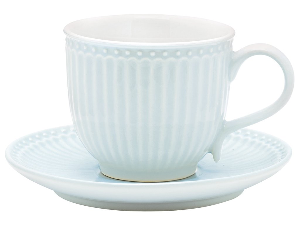 Keramický šálek a podšálek Alice Pale Blue je součástí kolekce Alice dánské značky GreenGate