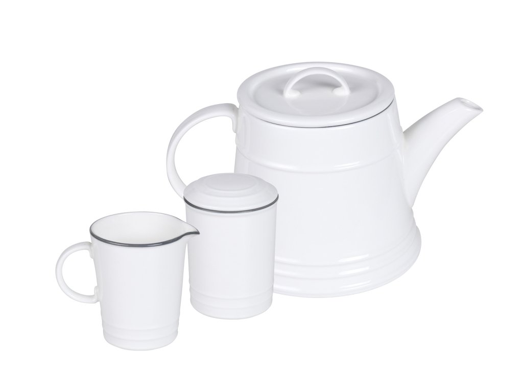 Design, který si pohrává s netradiční kombinací tvaru a materiálu. Tvar tak typický pro smaltované nádobí našich babiček a použitý materiál jakostní porcelán, působí mile a vlídně. Porcelánová konvice má smetanový nádech a elegantní šedý proužek jen podtrhuje kontrast křehkosti a retro tvaru „kovového“ nádobí. Designová konvice v nadčasovém provedení. Moderní konvice od české značky by inspire...porcelán s českou duší.