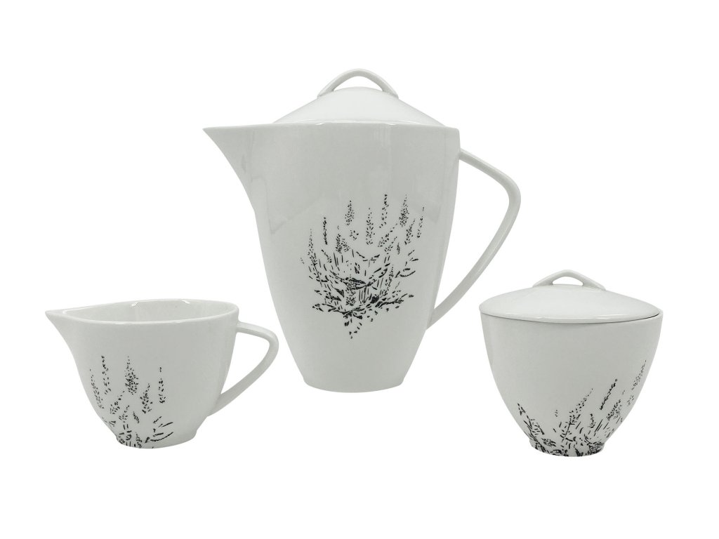 Oblé křivky jsou jednoduše dokonalé a vysoce jakostní porcelán se sametovým nádechem jen umocňuje dojem elegance a luxusu. Neobyčejný design dotváří černý dekor v podobě trsu květin. Vyčárkovaná malba dekoru skvěle podtrhuje celkový vzhled kolekce.
