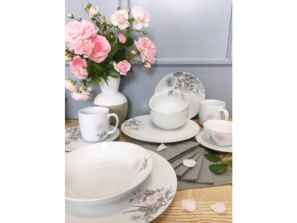 Kolekce Rose české značky by inspire s motivy růží v šedorůžové kombinaci je elegantní a slavnostní. Tato růže Vám nikdy neuvadne a vždy potěší při každé příležitosti u prostřeného stolu.