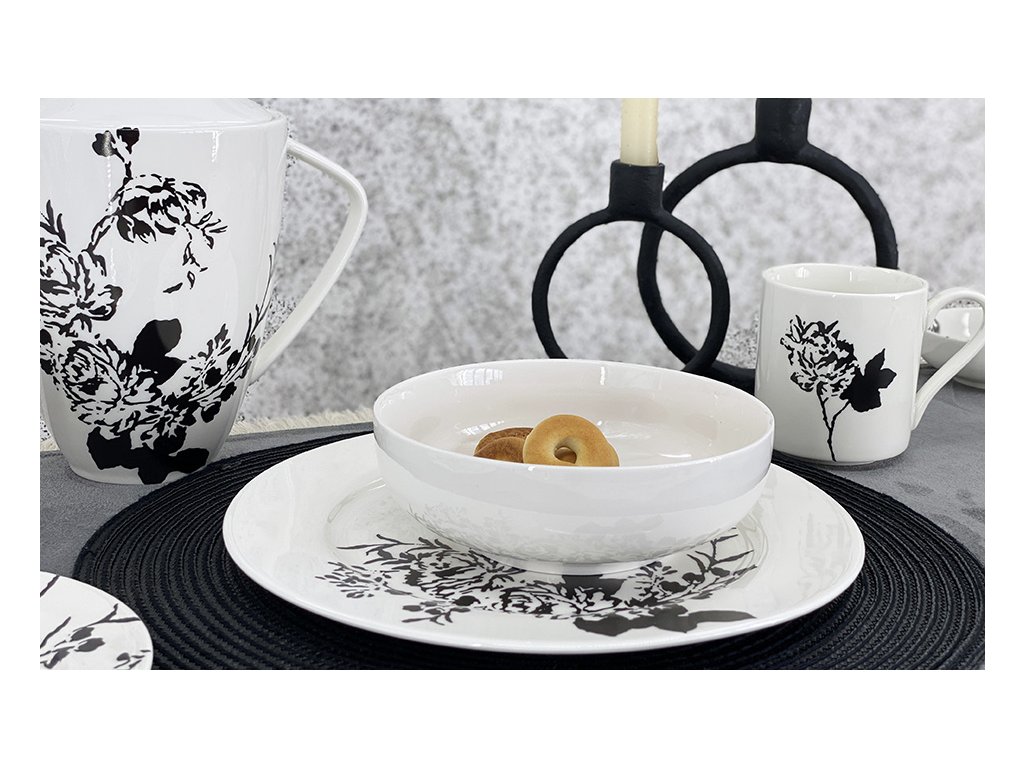 Tenký porcelán se smetanovým nádechem a výrazný dekor černé růže to je kolekce Natty od české značky by inspire…porcelán s českou duší. Moderní a nadčasová kombinace barev vytváří elegantní kolekci porcelánového nádobí. Sadu porcelánových talířů si můžete kombinovat i s čistými talíři bez dekoru. Jak už jsme si u designérů české značky by inspire mohli zvyknout, i u této porcelánové kolekce má každý kus porcelánu trošku jiný dekor.