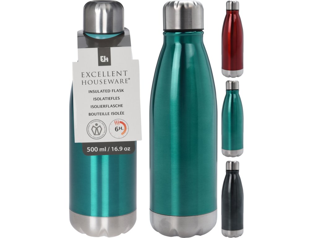 Krásná termoska v elegantní barvě o objemu 500 ml je vyrobena z broušené nerezové oceli. Termo lahev Vám dlouho udrží teplotu nápoje (až 6 hodin) a stane se pěkným doplňkem. Nedoporučujeme používat v mikrovlnné troubě a mýt v myčce na nádobí. Výška termosky - 26,5 cm, průměr dna 6,5 cm. Barevné provedení - červená