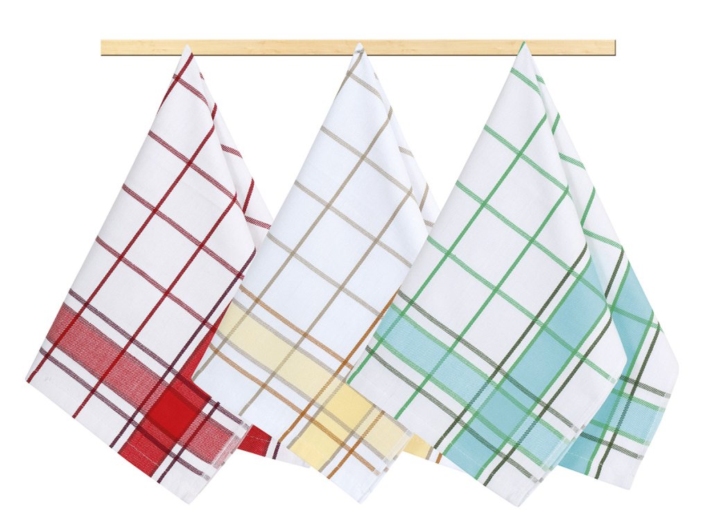 Kuchyňské utěrky jsou vyrobeny ze 100% bavlny o plošné gramáži 240g/m2. Jsou dostatečně velké a velmi dobře savé, v různých barevných variacích a dezénech. 100% bavlna zajišťuje dostatečnou savost použitého materiálu. Balení obsahuje tři kusy utěrek, barevnost utěrek může být odlišná oproti vyobrazení.