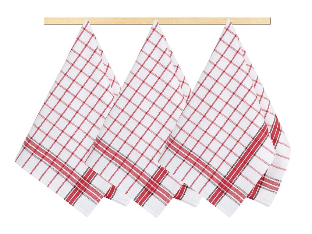Kuchyňské utěrky jsou vyrobeny ze 100% bavlny o plošné gramáži 240g/m2. Jsou dostatečně velké a velmi dobře savé, v různých barevných variacích a dezénech. 100% bavlna zajišťuje dostatečnou savost použitého materiálu. Balení obsahuje tři kusy utěrek, barevnost utěrek může být odlišná oproti vyobrazení.