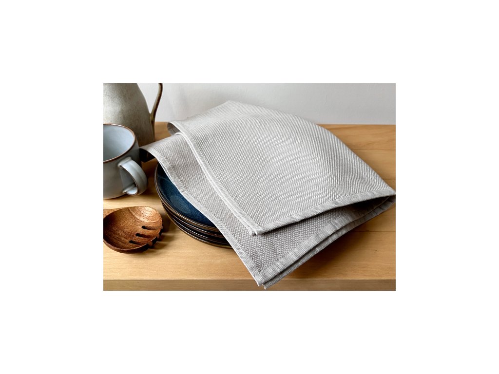 Díky husté, jemné panamské vazbě je utěrka pevná, tvarově stabilní a zároveň příjemná na dotek. Robustní konstrukce umožňuje dlouhodobé používání i při častém praní.