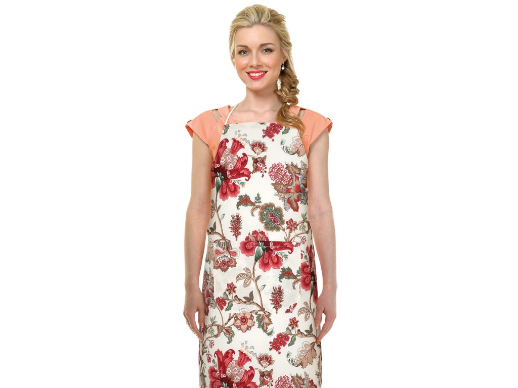 Kuchyňský zástěra je nepostradateným doplňkem pro každou hospodyňku. Ve stejném designu je možné objednat i chňapku nebo ubrus na stůl.