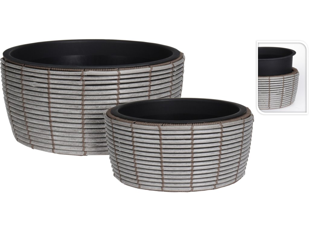 Květináč Plant malý 29x17cm s proutěným vzorem, šedá