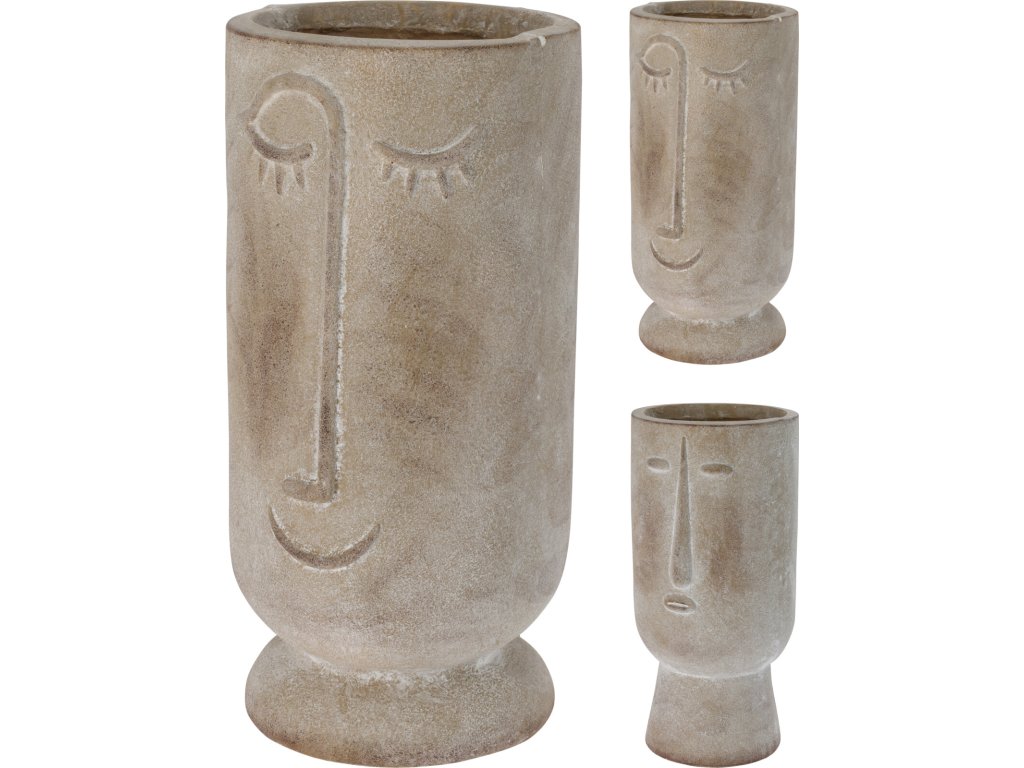 Květináč s obličejem Taro – béžový, v 35 cm, úsměvavá tvář