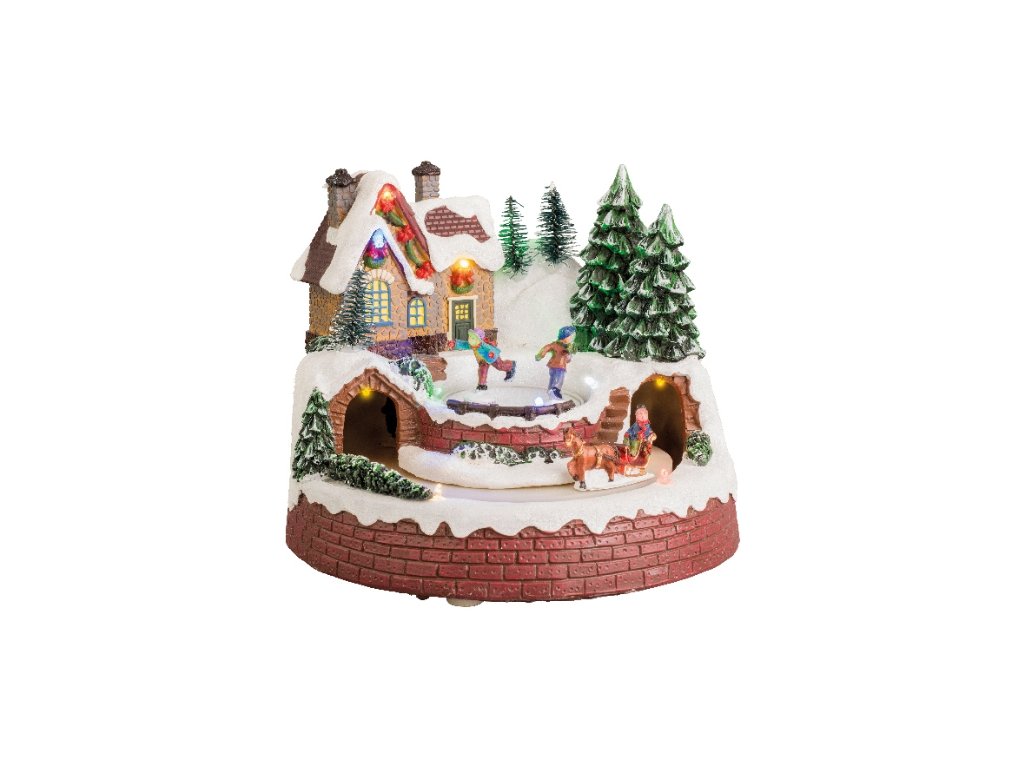 Hmotnost: 0,58 kg Barva: vícebarevná Velikost balení: 19 × 19 × 19 cm (karton) Tvar: zimní krajina s vláčkem a saněmi Funkce: svítí trvale, pohyb, hudba Počet LED: 12 Barva LED: vícebarevná Velikost LED: 3 mm Napájení: baterie / DC Typ baterie: AA Počet baterií: 3 (není součástí) Čas provozu: 36 hodin Vnitřní / venkovní použití: interiér Ruční výroba: ano Zvuk: ne Vyměnitelné LED: ne IP třída: IP-20 Certifikace: CE/UKCADoplňkové parametry