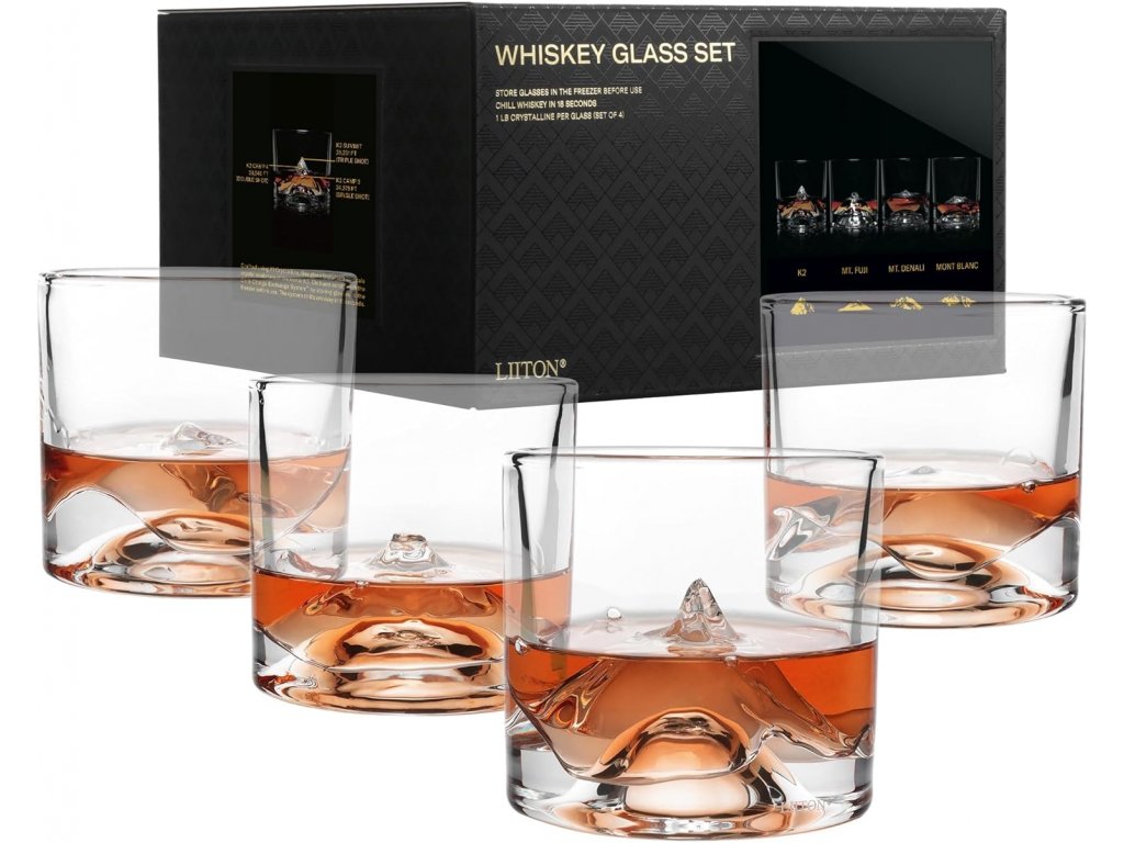 NOVÁ A UNIKÁTNÍ SKLENICE NA WHISKEY LIITON MOUNTAIN: Sklenice Liiton se nepodobá žádné jiné sklenici na whisky, která je v současné době na trhu. Má jedinečný design horského masivu, který se táhne po stranách sklenic. Design horských skal a kamenů jemně provzdušňuje whisky tím, že ji mísí se vzduchem. Víření kolem nápoje vytváří skutečně příjemný zážitek z ochutnávání whisky. těžká základna dává možnost používat sklenice pro různé příležitosti a nápoje. Vaše oblíbené míchané koktejly, míchané nápoje, likéry, koňak, vodka, tequila, gin nebo třeba jen stylová a elegantní sklenice vody či džusu chutná v těchto exkluzivních sklenicích ještě lépe.