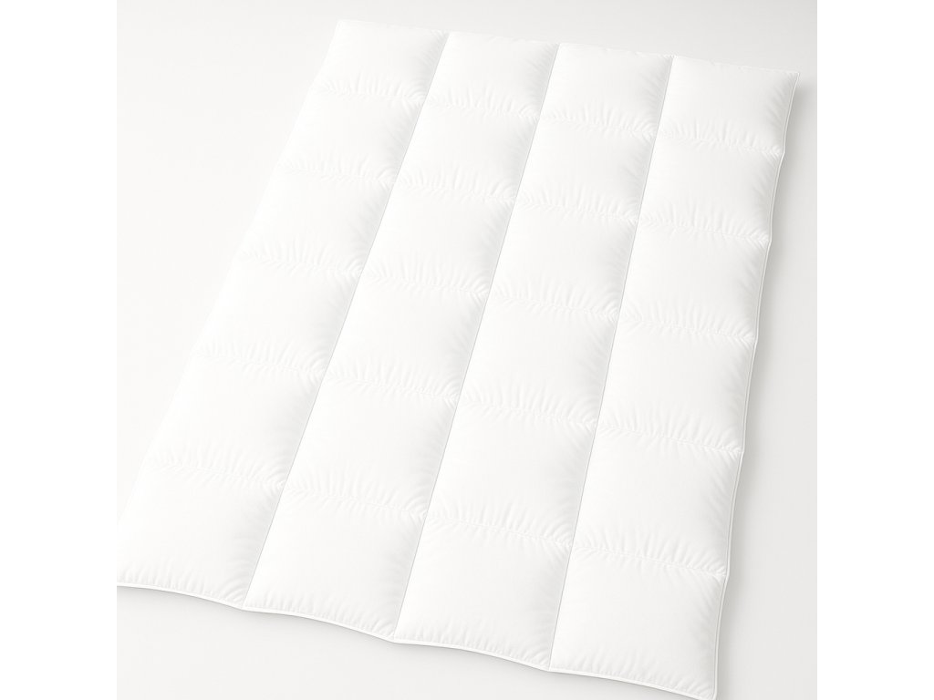 Konstrukce: Kazetové prošití – zabraňuje shlukování peří a tvorbě chladných míst.