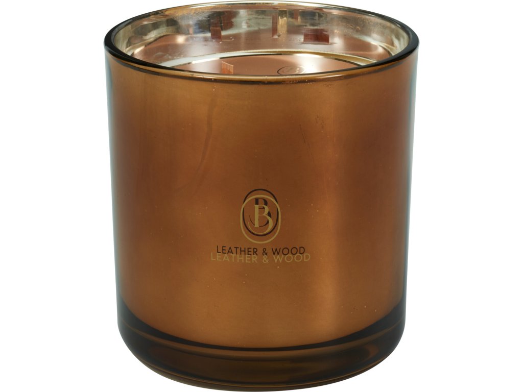 Luxusní vonná maxi svíčka Kůže a dřevo s dřevěným knotem, měděná (15x15 cm)
