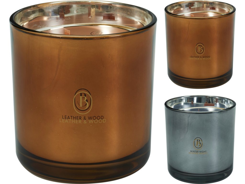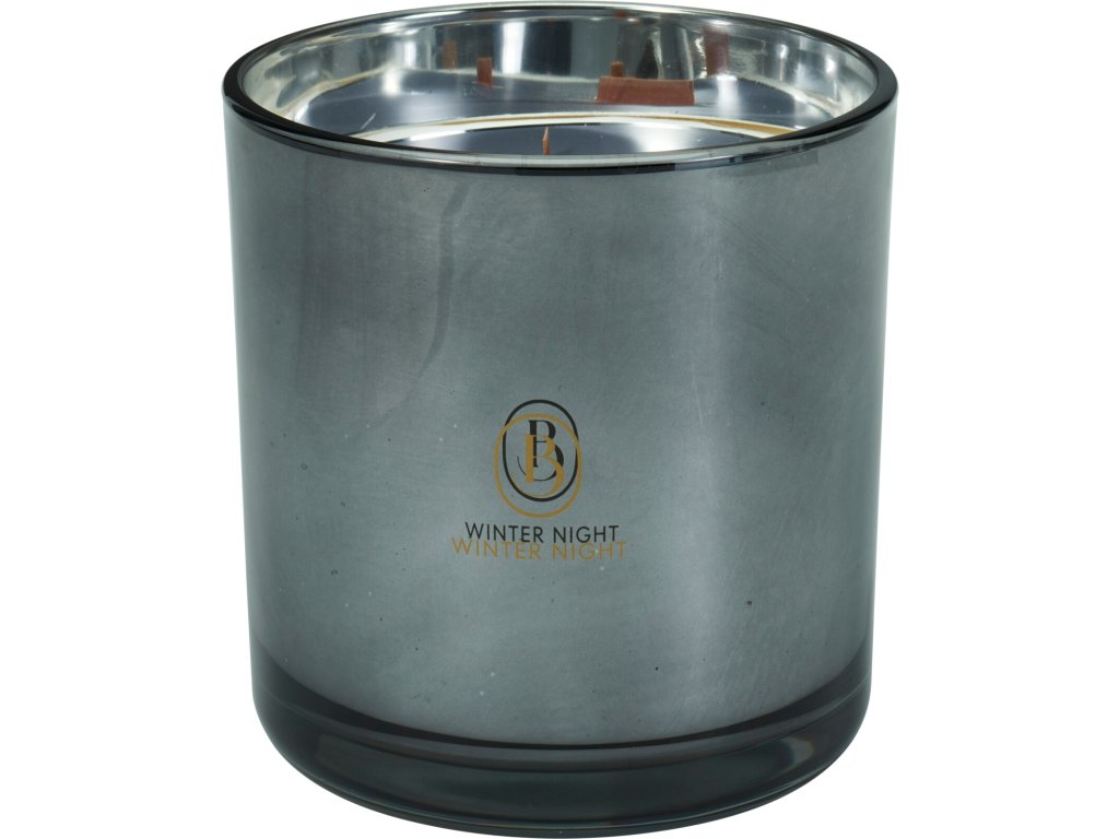 Luxusní vonná maxi svíčka Zimní noc s dřevěným knotem, tmavě šedá (15x15 cm)